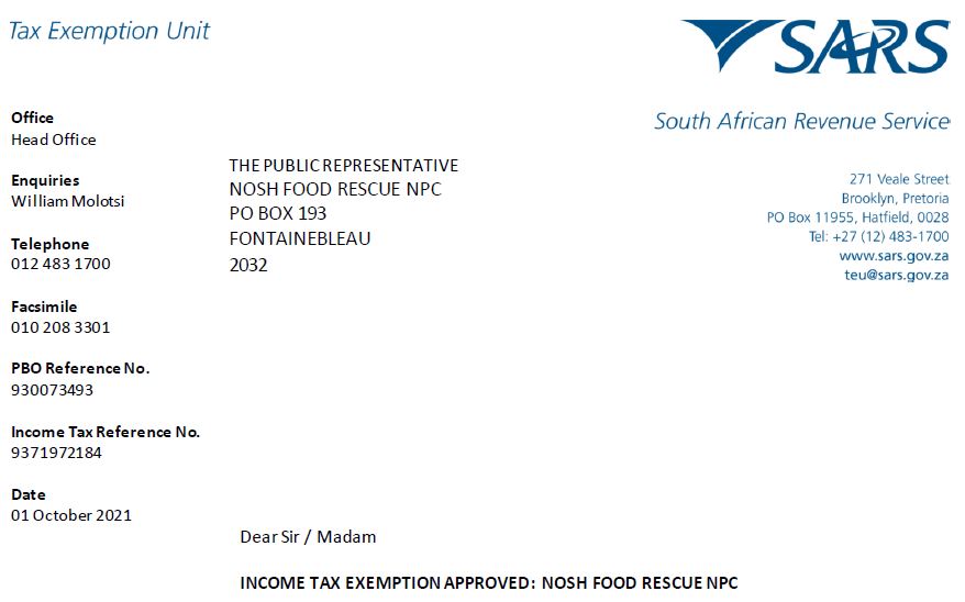 First, we finally received confirmation of our PBO (Public Benefit Organisation) status from SARS. This means we can now issue Section 18a Tax Clearance Certificates to South African donors, which is really an amazing bit of progress! Secondly, we also complied with all the requirements for what is termed an Equivalence Determination (ED), which indicates to any potential donors or Grantmakers in the USA that we are the equivalent of a U.S. public charity as defined by U.S. tax law. Grantmakers use this service, provided by NGOsource, as a cheaper and more efficient substitute for conducting EDs themselves. Now that we have been certified for one Grantmaker by NGOsource, additional Grantmakers and even private donors can receive ED certifications immediately, which obviously represents a great opportunity for Nosh to look at accessing potential funding for the many projects we are looking to ramp up in the coming year.